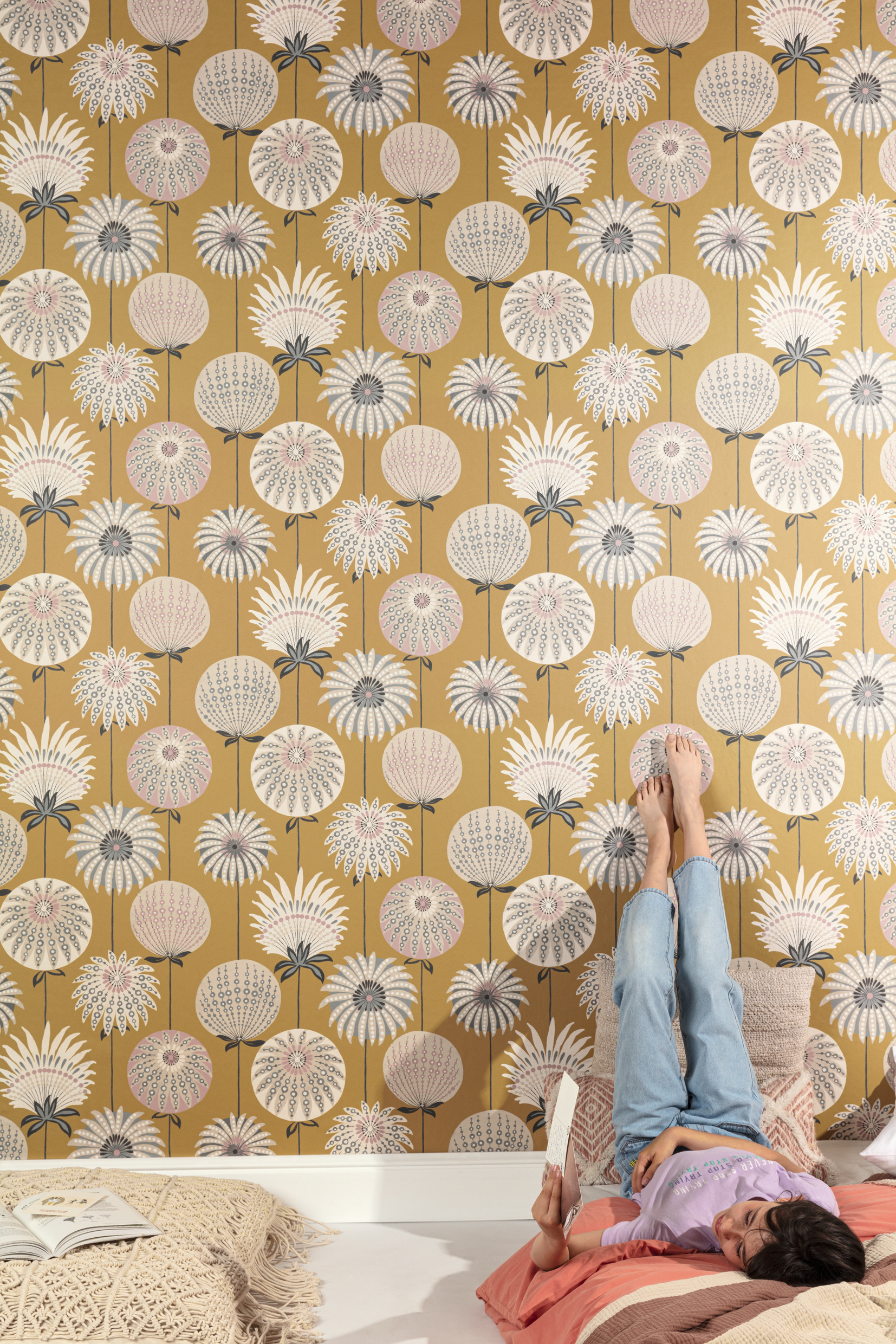 Catalogo: BE HAPPY Medida: Rollo Tapiz 10.05 x 0.53 m Rapport: 64 cm Tiempo de Entrega: 3 a 4 semanas